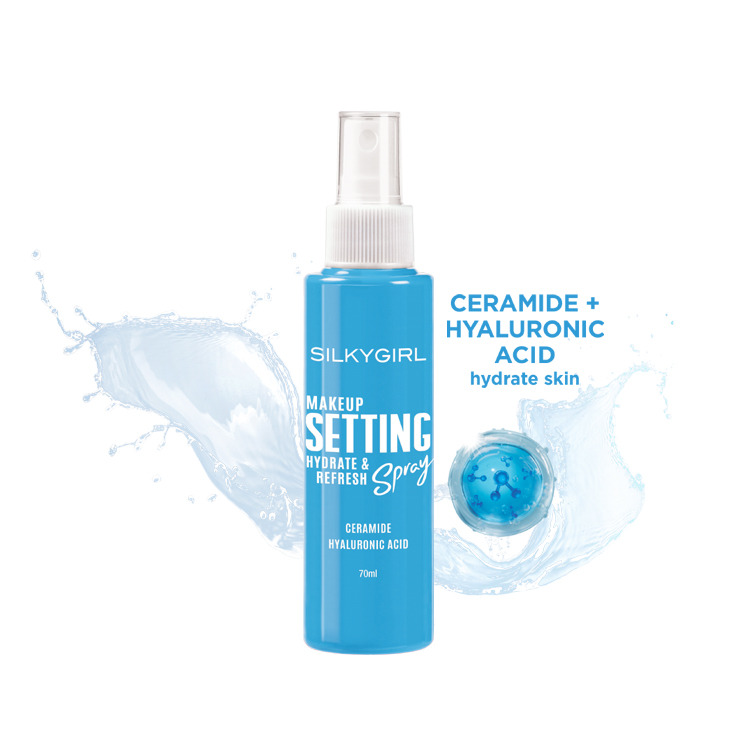 Makeup Setting Spray Hydrate & Refresh is your go-to to prep, set, and refresh your makeup anytime. It keeps your skin dewy and hydrated with its lightweight, refreshing formula. Enriched with Ceramide, Hyaluronic Acid, Aloe Vera, Chamomile, Witch Hazel, and Vitamin E, it delivers a burst of moisture and care with every spray.