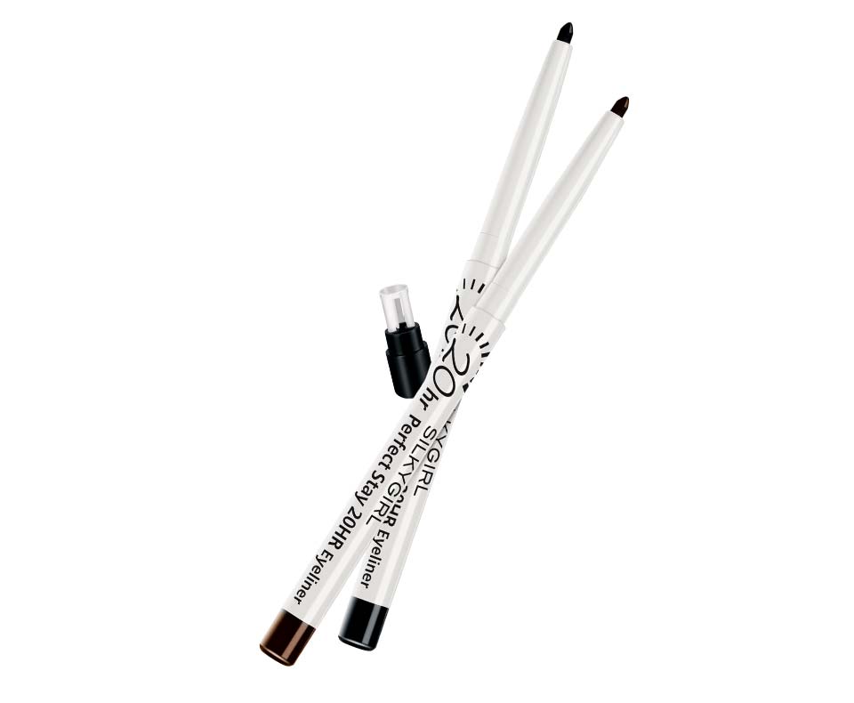 With the unique technology of a combination of volatile silicones and siliconic resin, this eyeliner is build to have long-lasting properties as it adheres to the eyelid and is transfer resistant. The high coverage, creamy formula with rich and intense color ensures that the eyeliner glides easily on eyelids. The eyeliner is waterproof and smudge-proof, and comes with a build-in sharpener.